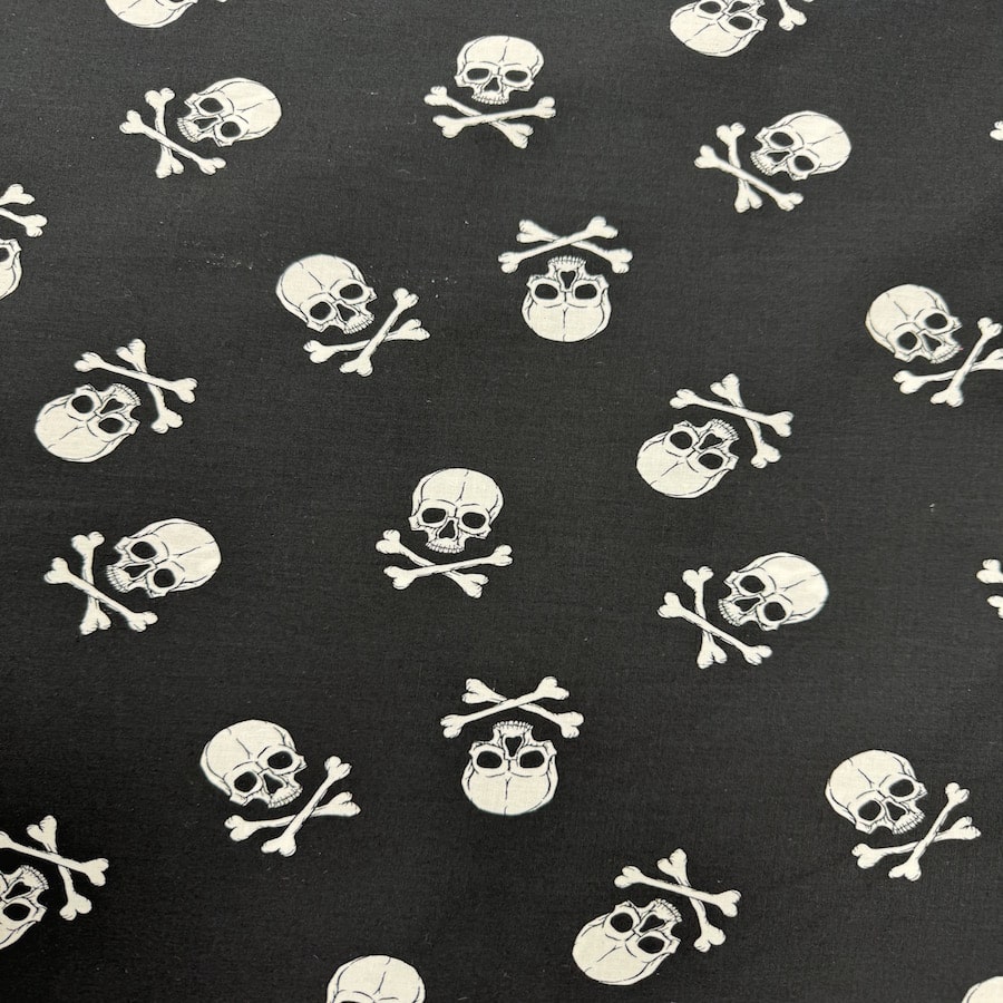 Coton imprimé tête de mort noir