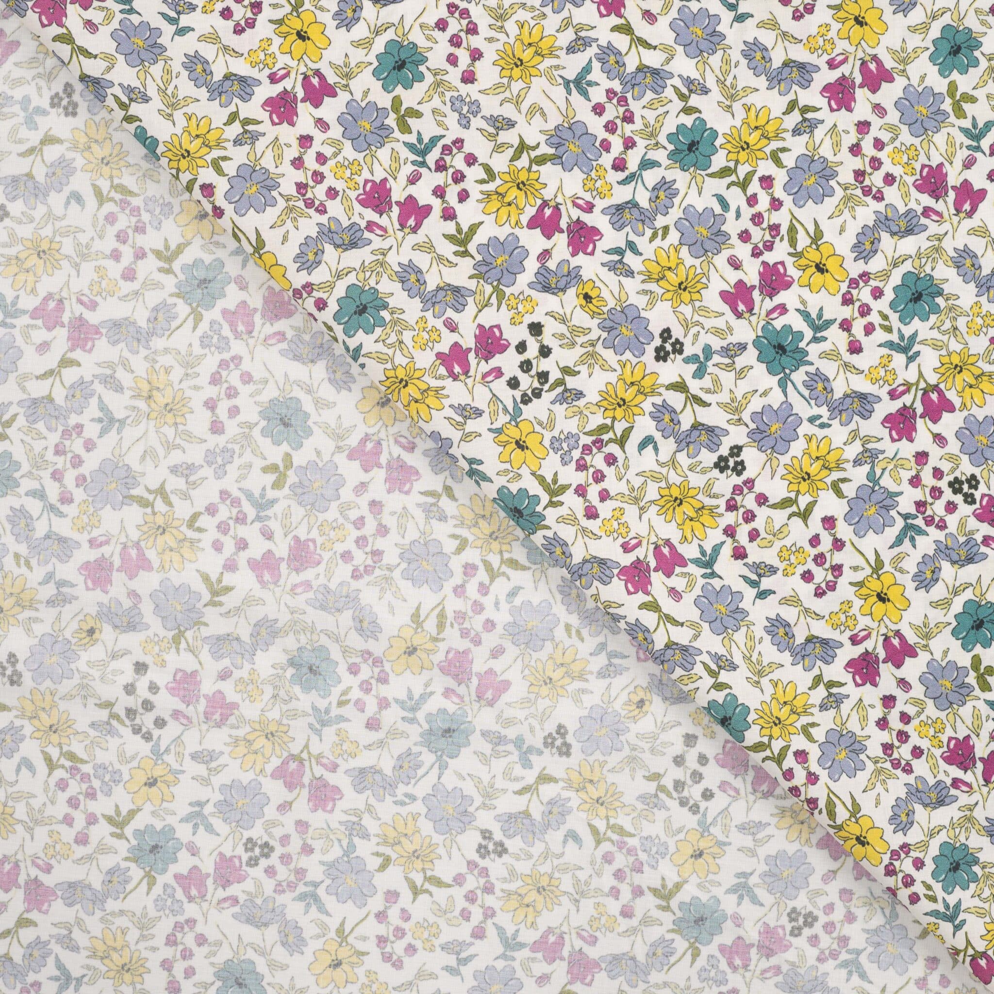 Son imprimé fleuri délicat apporte une note romantique et intemporelle, idéale pour confectionner des vêtements féminins tels que des robes, des chemisiers, ou des jupes, mais également pour des projets de décoration comme des coussins ou des rideaux légers.