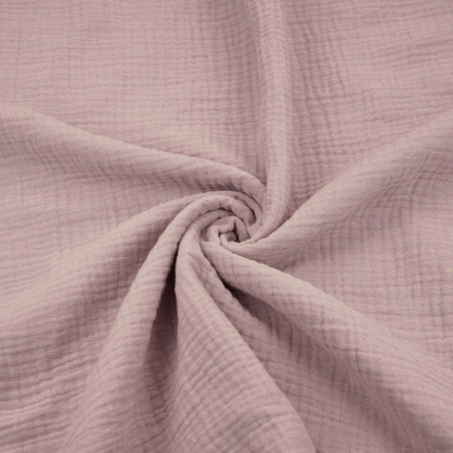 Le tissu double gaze de coton rose perle est un tissu léger souple idéal pour la confection de vêtements, langes, chèches, rideaux, plaids.