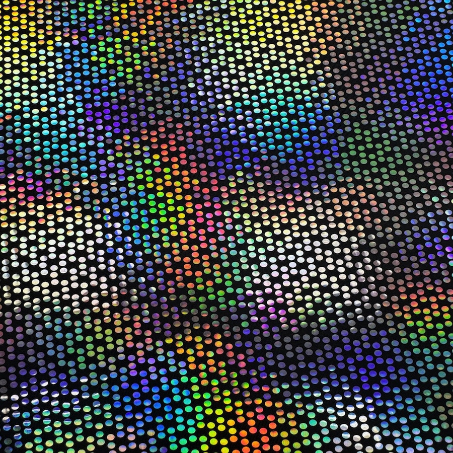 Élasthanne pailleté argent hologramme fond noir