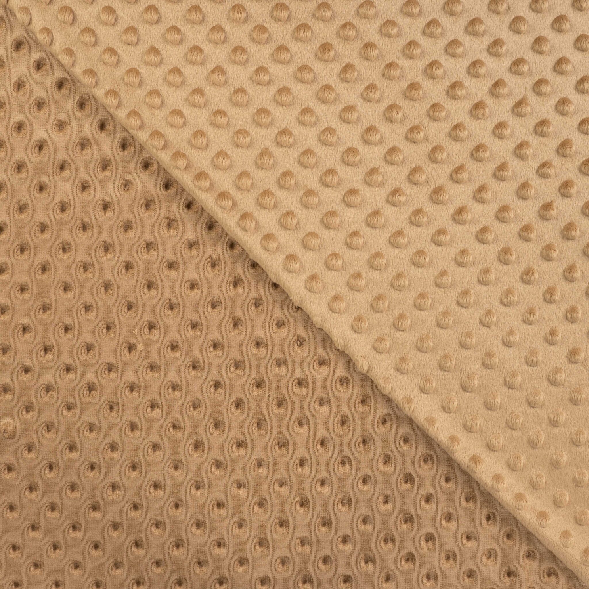 Le minky est une matière douce et chaude, qui se compose de polyester et d’acrylique. Il est très moelleux et est connu pour sa texture veloutée et sa douceur incomparable.