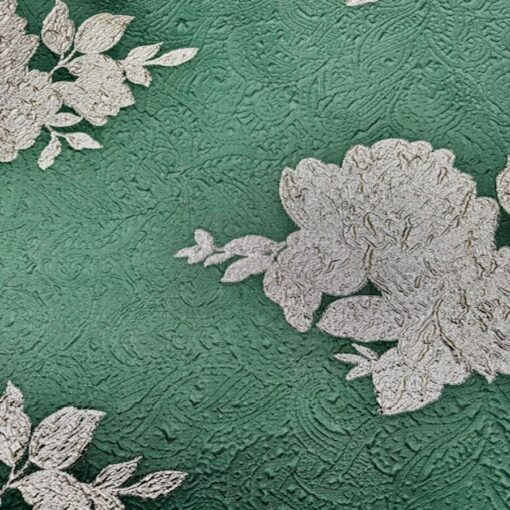 Le brocart haute couture est un tissu d’une grande richesse et d’une grande élégance, connu depuis l’Antiquité pour son aspect luxueux et raffiné. Il s’agit d’un tissu décoratif, souvent orné de motifs complexes et colorés, qui est traditionnellement utilisé pour la confection de vêtements de cérémonie, de robes de mariée, de costumes de théâtre et d’autres vêtements de luxe.
