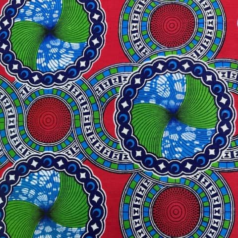 Tissu coton wax imprimé Cercles rubis & émeraude