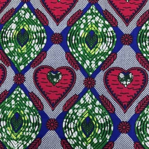 Tissu coton wax imprimé Cœurs palmiers
