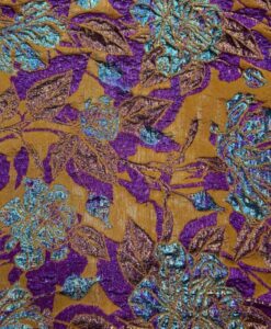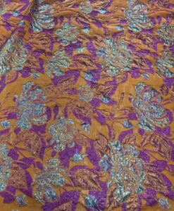 Le Tissu brocard palmeraie fuchsia fond orange est un textile luxueux, orné de motifs de palmes dorées sur un fond bleu profond. Idéal pour la création de vêtements de cérémonie, de robes de soirée, d’accessoires de haute couture, ainsi que pour la décoration d’intérieur, il convient parfaitement à des rideaux, coussins et autres éléments décoratifs, apportant une touche d’élégance et de raffinement à tout espace.