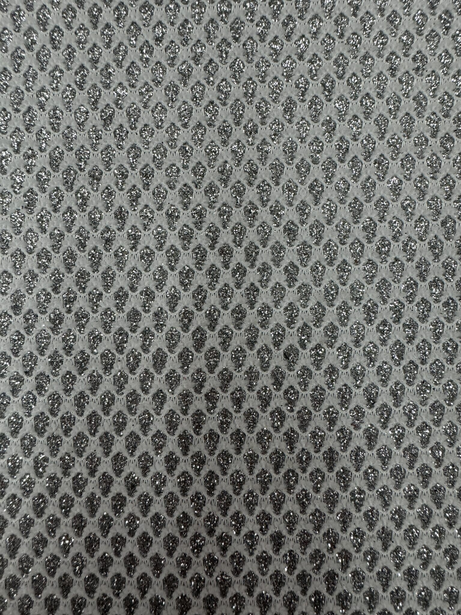 Ce magnifique tissu pailleté argent légèrement stretch se distingue par ses délicates gouttes argentées dispersées sur toute sa surface, offrant une allure scintillante et élégante. Ce tissu est idéal pour la confection de vêtements de soirée, robes de cocktail et accessoires mode, combinant sophistication et modernité. Fabriqué à partir d’un mélange de polyester et d’élasthanne, ce tissu assure confort et élasticité, tout en maintenant son éclat.