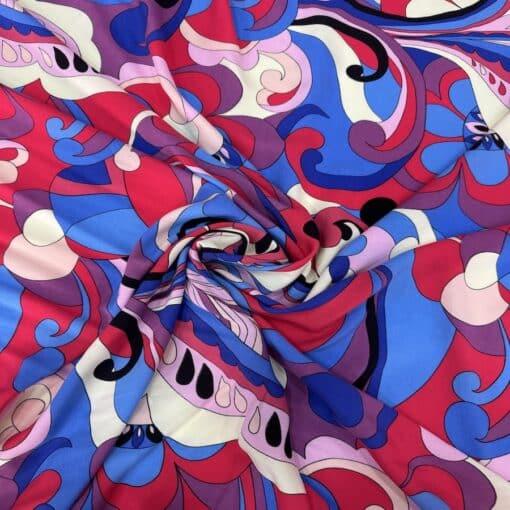 Viscose imprimé pucci bleu et rouge